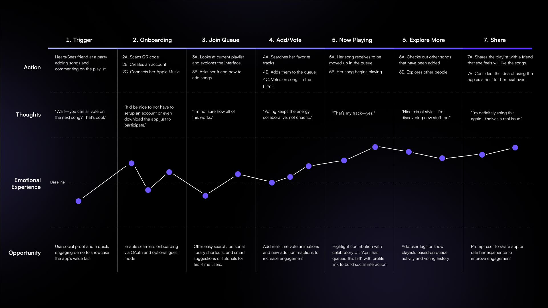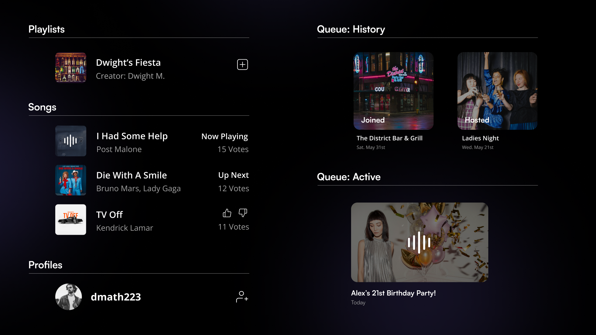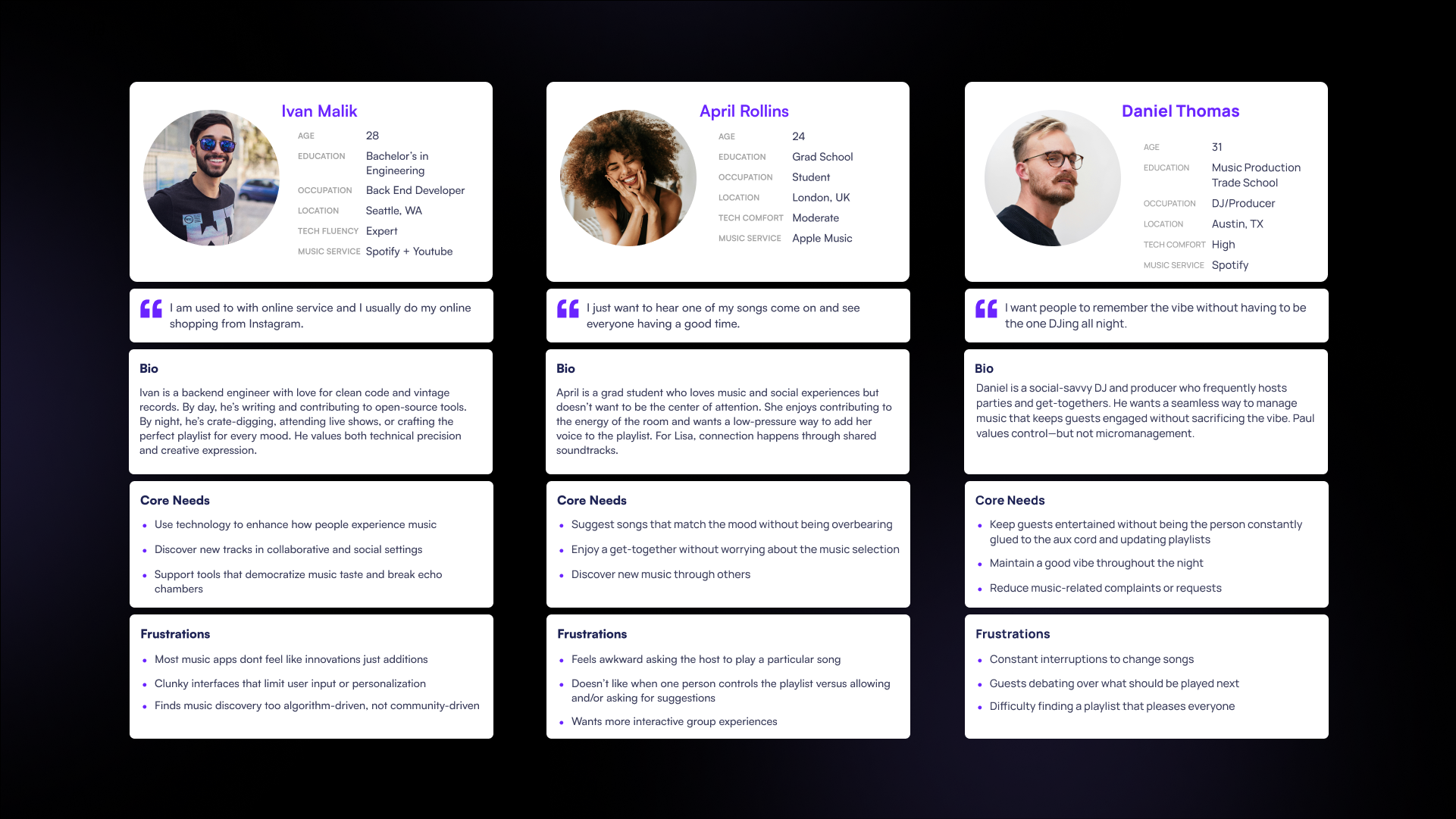In social settings, music often becomes a point of friction—someone always dominates the aux cord, and others have no say in the playlist. The result? Disengaged listeners and an unbalanced music experience. There is a need for a democratic, real-time way for everyone to contribute to and influence the music being played.